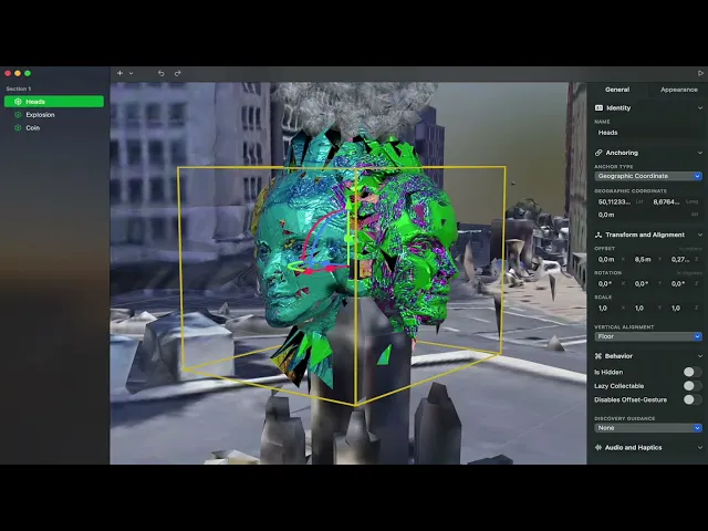 Anchoring 3D elements to a geographical landmark using Google Geospatial API.